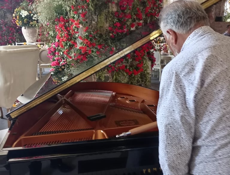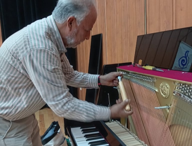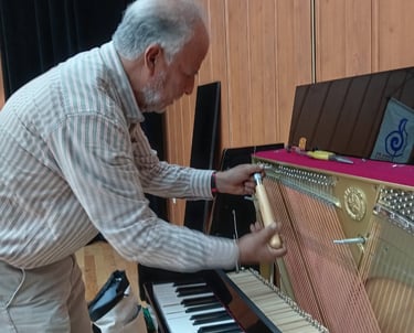 Afinamos su piano para que suene perfecto, además; ofrecemos cambio de cuerdas, pedales, pulsación, barniz alto brillo en cualquier color y reparaciones en general.